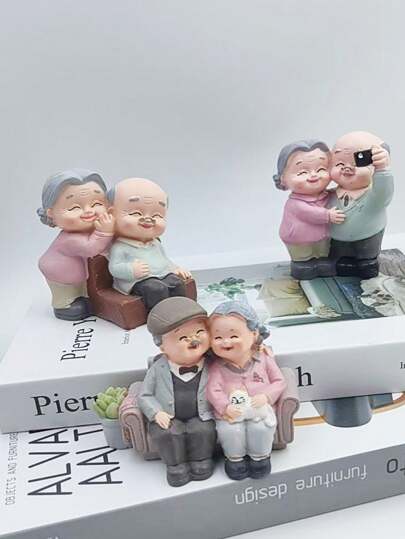 Resin Elderly Couple With Beloved Dog Figurine, Hand-Painted, Symbolizing Love And Companionship, Suitable For Various Room Styles, Ideal For Indoor/Outdoor Decor, Also A Great Gift For Thanksgiving, Valentine's Day, Father's Day, Mother's Day, Home Decor, Birthday, Graduation, Etc. - Multicolor - View 1