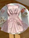 SHEIN MOD White Eyelet Lace Mini Dress With Cap Sleeves And Tie Front Detail, Square Neckline, Fitted Waist, Floral Pattern, Lightweight Cotton Fabric, Feminine, Romantic, Elegant, Casual, Summer, Beachwear, Everyday Wear, Picnic, Boho Chic, Soft Texture, Comfortable, Versatile, Youthful, Stylish, Classic, Flowy, Charming