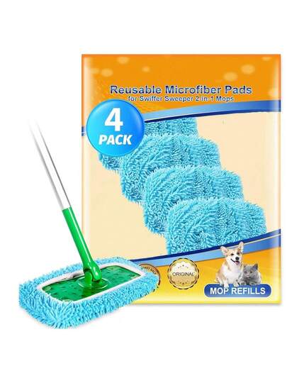 Reusable Dry Sweeping Cloths Microfiber Wet Mop Pads Compatible With Sweeper Mop Replacement Sweeping Mopping Pad Refills For Hardwood Surface Floor Cleaning (4pcs) - Blue - View 1