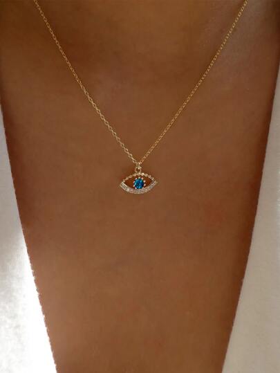 Rhinestone Eye Charm Necklace - Yellow Gold - View 1