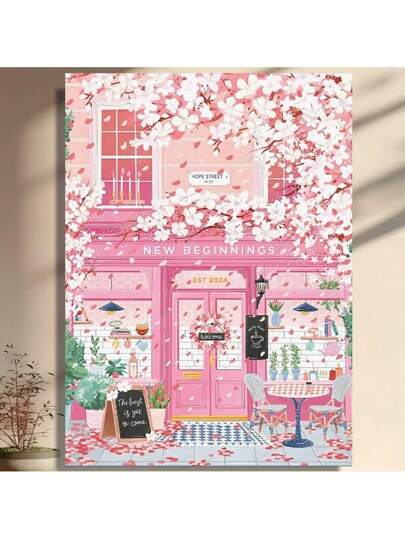 Framed   Pink Blossom Cafe Canvas Wall Art Tren /Dy Pink Cherry Flower Poster Funky Pastel Girly Aesthetic Prints For Kitchen Coffee Room   Birthday Party Decor, Mother's Day New Year Easter Gift,  Home Living Room Office Wall Decor, Perfect Gift And Wall Decoration - Framed - View 1