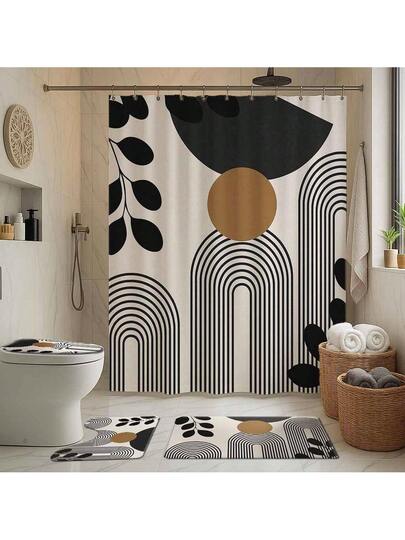 1/4pcs Bohemian Style Abstract Pattern Bathroom Set, Includes Shower Curtain, Bath Mat, U-Shape Toilet Seat Cover, Toilet Lid Cover, Waterproof Bath Decor, Modern Curtain For Bathroom Window, No Drilling Required, Machine Washable - Multicolor - View 1
