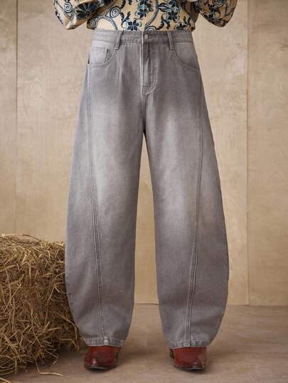 RivetRise Men's Grey Mature Casual Curved Knife Jeans - Grey - View 1