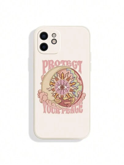 Rosie Sun Eye Moon Hand Painted Protective Phone Case Compatible With IPhone 12/13/14 Series, Beige - Baby Pink - View 1