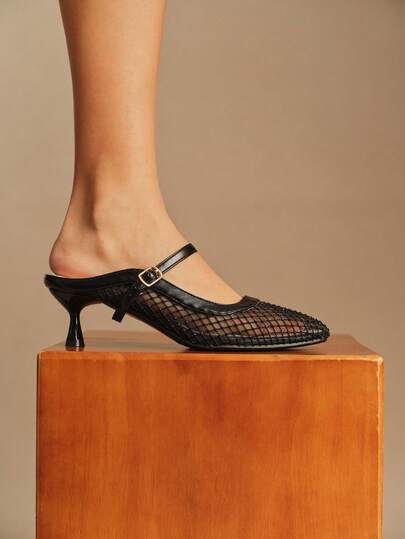 Rosivie Women's Buckle Design Fashionable Elegant High Heel Mules - Black - View 1