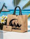 Large Capacity Linen Tote Bag With Lantern, New Moon And Stars Patterns,Ramadan Kareem,Eid Mubarak, Ramadan Kareem,Sacred Warm, Festive Household Items, Written Blessings, Islamic Gift,Eid Gift,Portable Large Capacity Shopping Bag