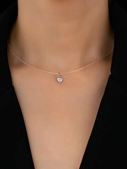 Round Cubic Zirconia Pendant Necklace Jewelry Gifts - Heart - View 1