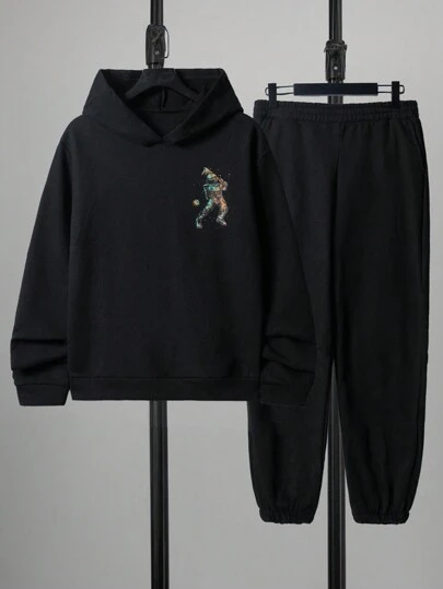 RueChic Men Astronaut Print Hoodie & Sweatpants - Black - View 1