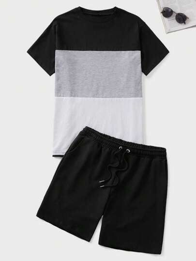 RueChic Men Color Block Tee & Drawstring Waist Shorts - Multicolor - View 1
