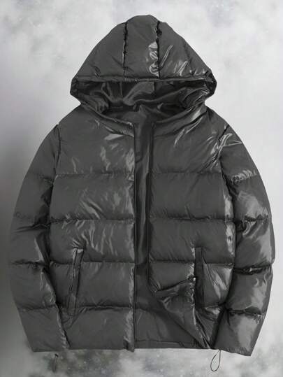 RueChic Men Zip-Up Regular Hoodie Padded Coat - Dark Grey - View 1