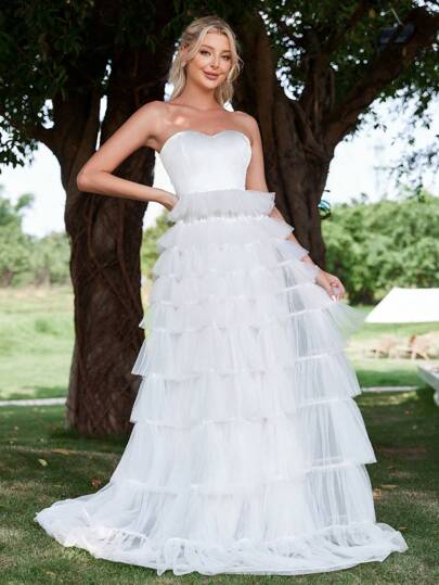 Ruffle Trim Mesh Tube Dress - White - View 1