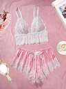 6 Pcs Women's Sexy Lingerie Set Triangle Cups Adjustable Straps Women's Top & Bow-Decorated Shorts Comfortable Homewear Solid Color Pajama Set