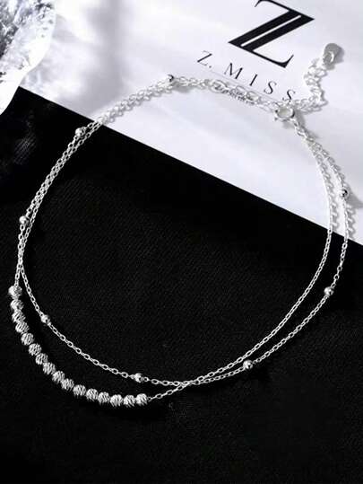S925 Sterling Silver Double Layer Rotating Bead Anklet Bracelet Girl Fashion Personalized Feet Chain For Women Girls Beach Jewelry Holiday - Silver - View 1