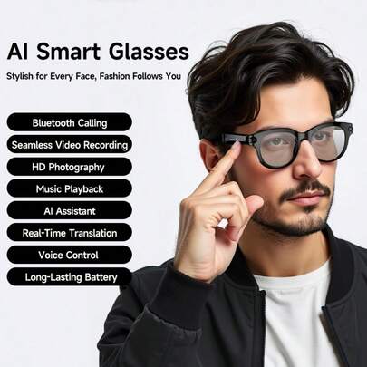 SENBONO New AI Photography Smart Glasses For Men, 2MP Camera, AI Voice, AI Photo Recognition, AI Translation, HD Photo/Video, Voice Assistant, Wireless Calling, Music Control; AI Photography Smart Glasses For Women, Compatible With Android, Ideal Gift For Birthday, Valentine's Day, Father's Day, Mother's Day - Black - View 1