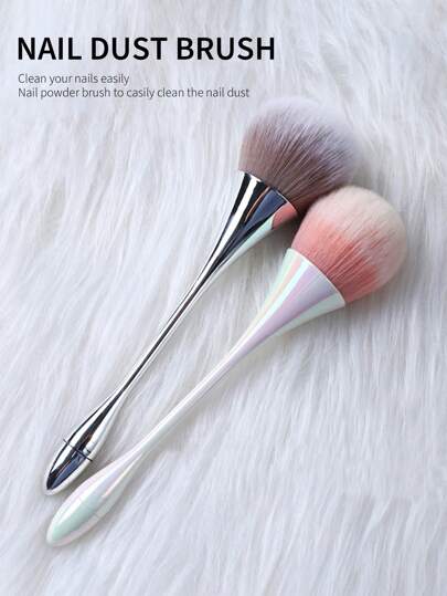 SHANGFEIYA 1pc Japanese Shape Nail Powder Brush With Iridescent Color Handle, Soft Bristle Makeup Blush Powder Brush - Multicolor - View 1