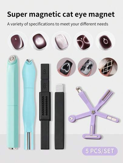 SHANGFEIYA Eight-In-One Purple Nail Art Magnet 5pcs Set Featuring Fancy Designs Multifunctional Glass Beads And Cat's Eye Nail Polish Gel Specially Designed With A Strong Magnet 1pc/5pcs - Multicolor - View 1