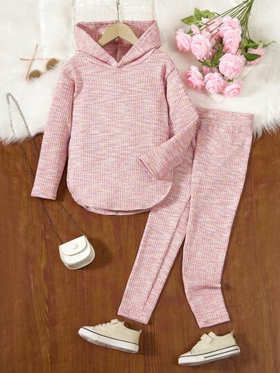 SHEIN 2pcs/Set Tween Girls Hooded Loose Top And Leggings Set - Multicolor - View 1