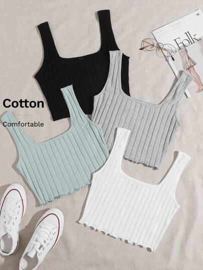 SHEIN EZwear 4 Pack Lettuce Trim Rib-knit Tank Top - Multicolor - View 1