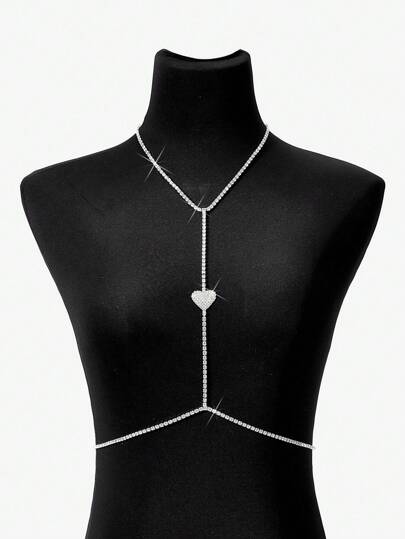SHEIN BAE European And American New Personalized Heart & Rhinestone Decor Chest Chain Accessory, Sexy Bikini Jewelry Body Chain For Women - Silver - View 1