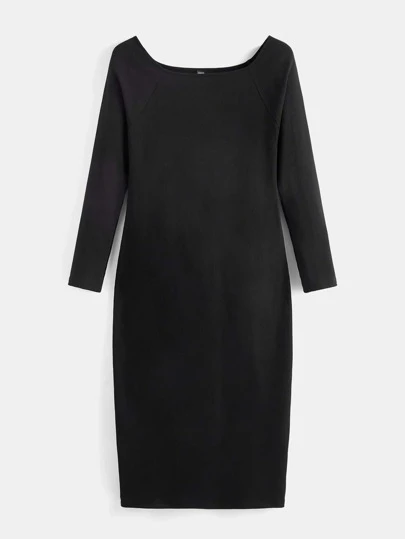 SHEIN BASICS Plus Ribbed Knit Bodycon Dress - Black - View 5