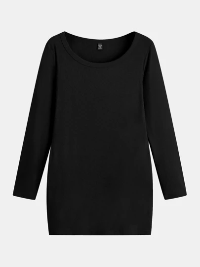 SHEIN BASICS Plus Solid Scoop Neck Bodycon Dress - Black - View 1