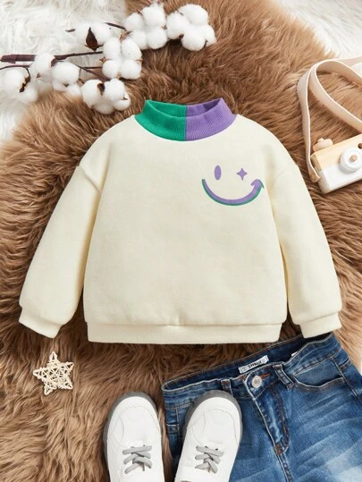 SHEIN Baby Boy Expression Print Mock Neck Sweatshirt - Multicolor - View 1