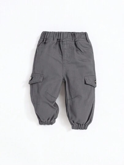 SHEIN Baby Boy Flap Pocket Cargo Jeans - Dark Grey - View 1