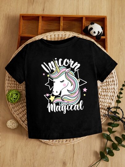 SHEIN Baby Unicorn & Letter Graphic Tee - Black - View 1