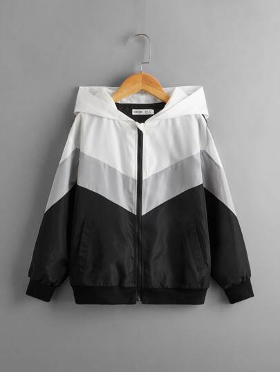 SHEIN Boys Colorblock Zip Front Hooded Jacket - Multicolor - View 1