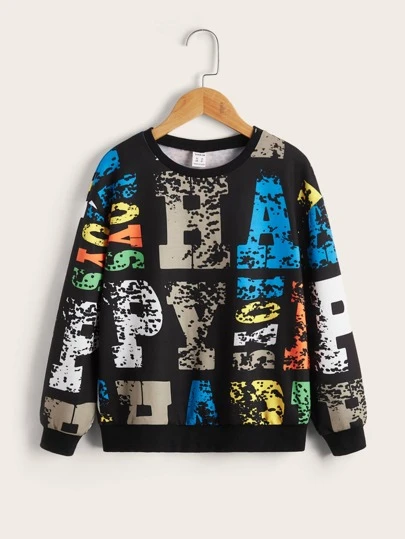 SHEIN Tween Boy Letter Graphic Drop Shoulder Pullover - Multicolor - View 1