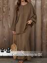 SHEIN CURVE+ Plus Size Women Solid Color Pleated Casual Loose Strap Dress/Autumn /Winter
