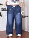 SHEIN CURVE+ Plus Size Women's Casual Simple Sleeveless Camisole Top, Faux Denim Print, Summer Suitable For Going Out