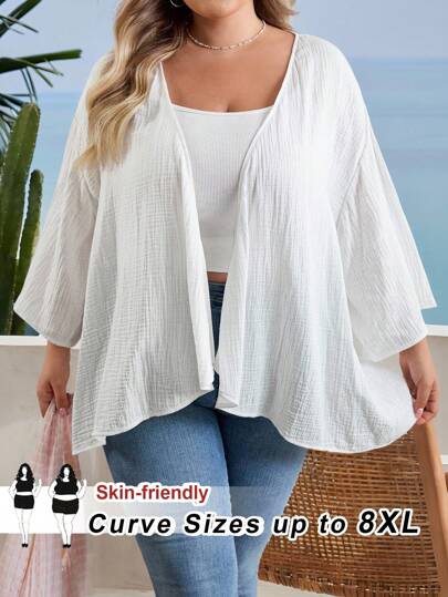 SHEIN CURVE+ Curves Plus Size/Chool Clothes/Back To School Clothes /Back To SchoolPlus Size Summer Cotton Comfortable Short White Lightweight Jacket Winter Fall Autumn - White - View 10