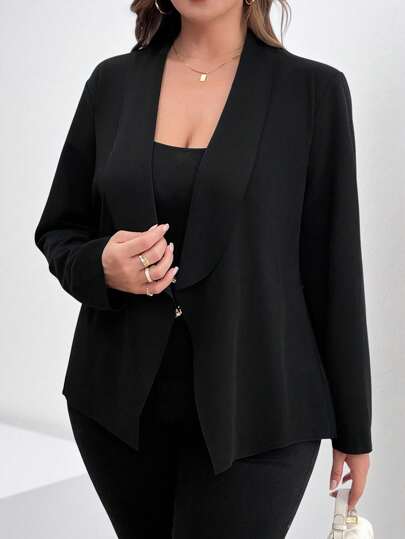 Chikora Plus Size Elegant Knit Work Blazer Winter Fall Autumn - Black - View 1