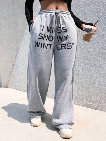 SHEIN Unity Slogan Graphic Drawstring Waist Sweatpants - Light Grey - View 1