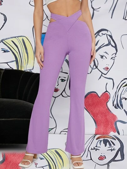 SHEIN Cut Out Bootcut Leg Pants - Lilac Purple - View 1
