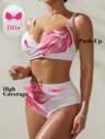 Swim DD+ DD Cup Women's Swimsuit, Spaghetti Strap V-Neck Push-Up Gather High Cut Swim Bottom, 2 Pieces Swimwear Set For Beach & Holiday For Summer Beach Vacation