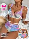 Swim DD+ DD+ Triangle Wire-Free Top & Floral Print Beach Bikini Set For Women For Summer Beach Vacation