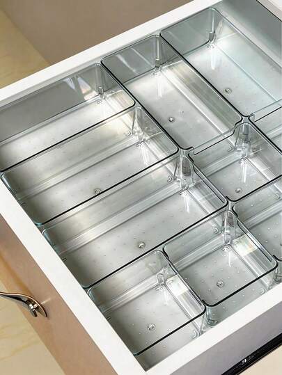 SHEIN Drawer Desktop Cosmetics Storage Box, 2PCS/6PCS Combination Clear Plastic Drawer Organizer Set,Transparent Dresser Storage Box, Exquisite Storage Box,Desk Drawer Divider Organizers And Storage Bins For Makeup, Jewelry, Gadgets For Kitchen, Bedroom, Bathroom, Office Christmas For Holiday Gift Giving - transparent black - View 10