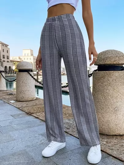 Muchica Plaid Print High Waist Pants - Multicolor - View 1