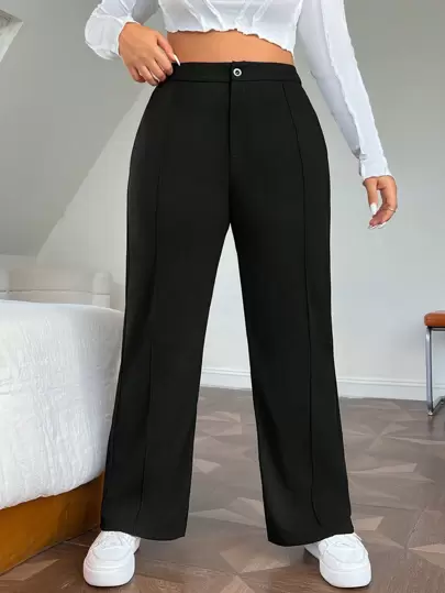 SHEIN EZwear Plus Seam Detail Straight Leg Pants - Black - View 1