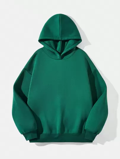 SHEIN EZwear Loose Casual Simple Long Sleeve Hooded Women Sweatshirt, Suitable For Autumn And Winter - Dark Green - View 1