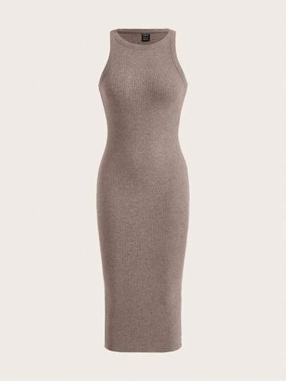 SHEIN EZwear Solid Ribbed Knit Bodycon Dress - Mocha Brown - View 1