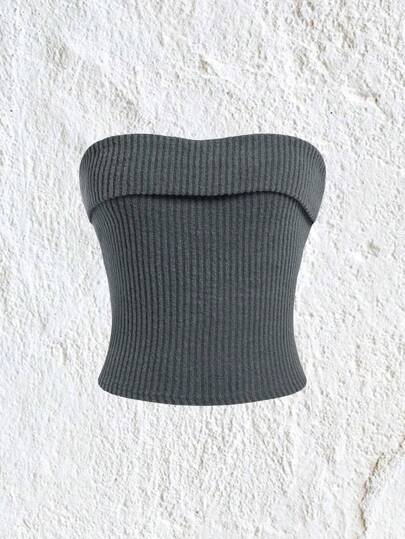 SHEIN EZwear Solid Tube Top Strapless Top - Grey - View 1