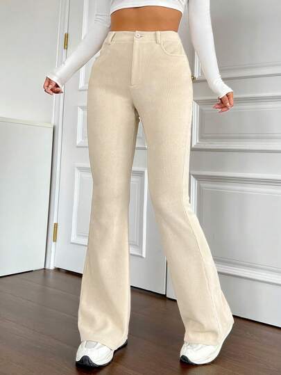 SHEIN EZwear SpringHigh Waist Flare Leg Pants - Apricot - View 1