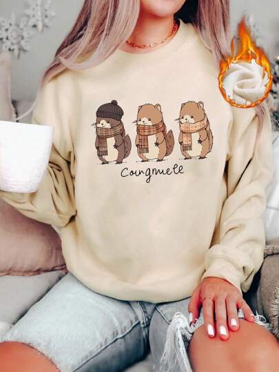 SHEIN Essnce Áo nỉ lót nhiệt in chữ hoạt hình