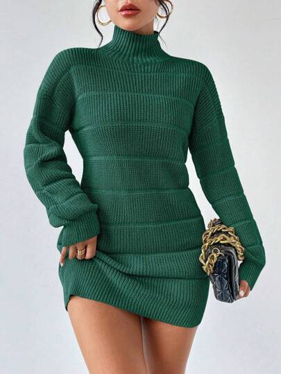 Chiquease Solid Color Turtleneck Sweater Dress Fall Winter Cloth For Women - Dark Green - View 1