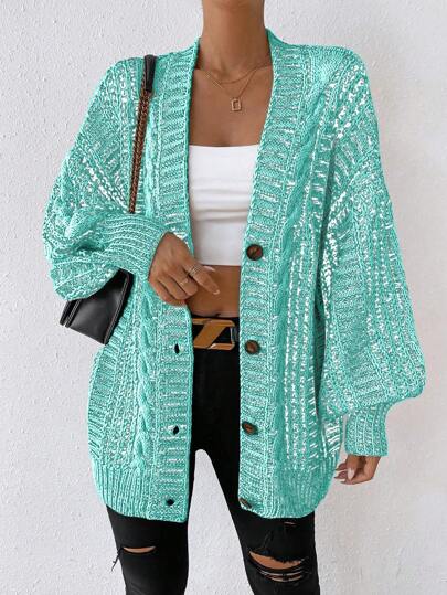 Chiquease Women's Drop Shoulder Long Sleeve Blend Cardigan - Mint Green - View 1
