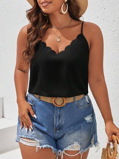 SHEIN Frenchy Plus Scallop Trim Cami Top - Black - View 1