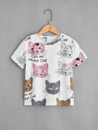 SHEIN Girls Letter & Cartoon Graphic Tee - Multicolor - View 1